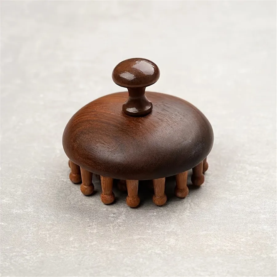 Ergonomic Mahogany Scalp Massager - Handheld Full Body Relaxation Tool with Unique Rounded Design for Relax